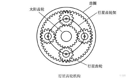 例如,發(fā)動機接太陽齒輪,行星齒輪架與傳動軸連接,使齒圈固定,或受一定的約束(即轉速為零或某一定值),則可實現(xiàn)不同的傳動比i>1的減速。